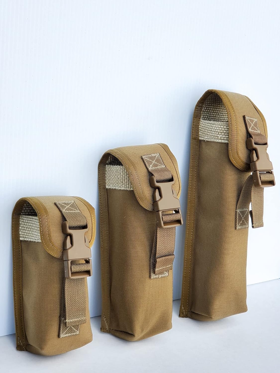 Our high heat suppressor pouch, The Fatty, is designed with a larger diameter than most suppressor pouches so it can be used with the suppressor cover still on the suppressor. The fatty’s diameter is about 2.75”-3” depending on which way you measure it across the top. The fatty will fit up to a 2” suppressor with one of our covers on it (i.e: the HAD/skinny/MAD), snugly.Made to fit with our MAD, HAD, or Skinny, and I'm sure it will fit other suppressor covers as well.Many of you like to remove your suppressors after shooting, or it is required by a range, this will give you a solution to put your suppressor in without having to remove the cover, and be able to throw it in your backpack or your car without having to worry about melting anything. The inside of our Fatty pouch is lined with the same High heat material that's on the inside of our HAD cover's outer sleeves and can take about 2,000 degrees of heat.Sizing for length of suppressor that our pouch sizes will fit:Small: 5-7" length suppressorMedium: 7.5-9" length suppressorLarge: 9-12"length suppressor